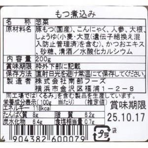 国産の豚もつをやわらかくボイルし、こんにゃく、人参、大根と醤油味で食べやすく炊き上げました。